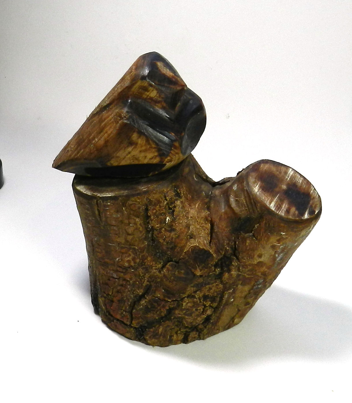Hand carved naturally gathered cherry wood. 4 inch tall. Bird comes off the perch for two pieces. Hide a trinket in the stump!