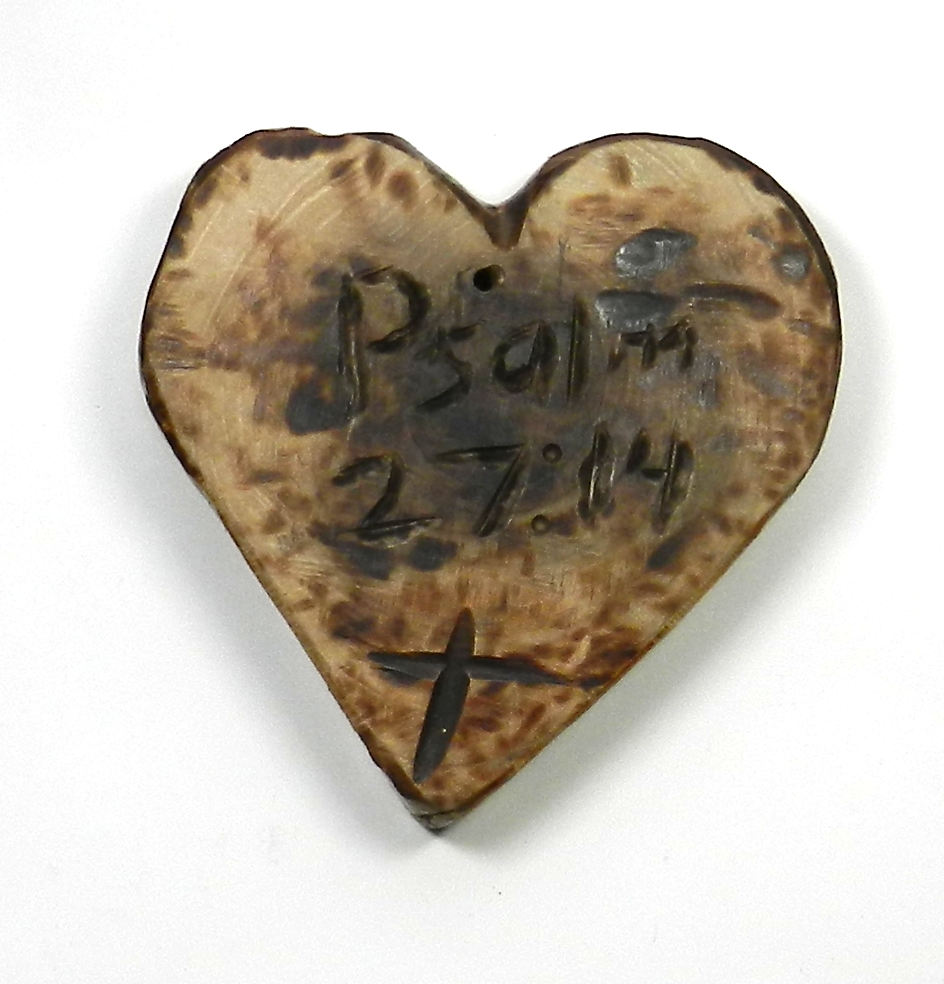 Hand carved naturally gathered cherry wood. 4 inch diameter. Hole for hanging.